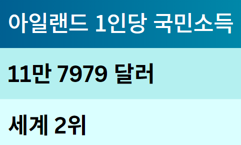 아일랜드 및 기타 국가 1인당 국민소득
