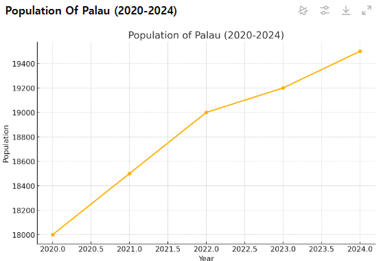 팔라우의 인구는 현재 약 2만 명으로, 세계에서 221위권에 해당합니다. 팔라우는 낮은 인구 밀도를 가지고 있으며, 인구는 주로 코로르와 같은 주요 도시에 집중되는 경향이 있습니다. 코로르는 경제적 기회와 교육, 문화의 중심지로 자리 잡고 있지만, 일부 외곽 섬 지역에서는 인구 유출과 경제적 불균형 문제가 지속되고 있습니다.