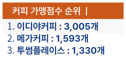 | 1 | 이디야커피 | 3,005 | 180,331 |