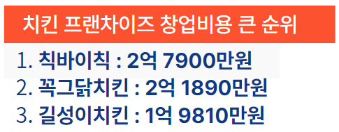 창업비용이 큰 치킨 브랜드 순위