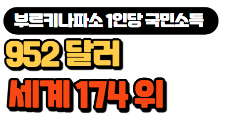 부르키나파소는 국민소득 약 170억 달러 규모로 세계에서 약 130위에 해당하며, 1인당 국민소득은 약 952달러로 세계 약 174위권에 위치합니다. 이를 기준으로 부르키나파소의 1인당 GDP는 서아프리카 국가들 중 하위권에 속합니다. 부르키나파소 경제는 농업, 광업이 주요 축을 이루고 있으며, 특히 금과 면화 산업이 경제에서 중요한 비중을 차지하고 있습니다.