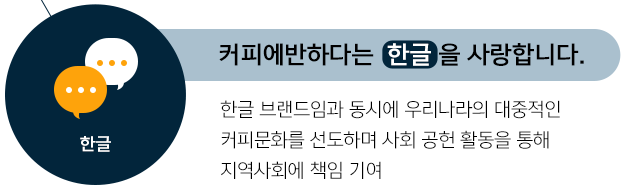 한글 브랜드임과 동시에 우리나라의 대중적인 커피문화를 선도하며 사회 공헌 활동을 통해 지역사회에 책임 기여