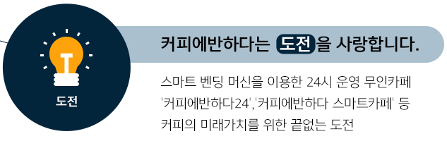 스마트 벤딩 머신을 이용한 24시 운영 무인카페 '커피에반하다24', '커피에반하다 스마트카페' 등 커피의 미래가치를 위한 끝없는 도전