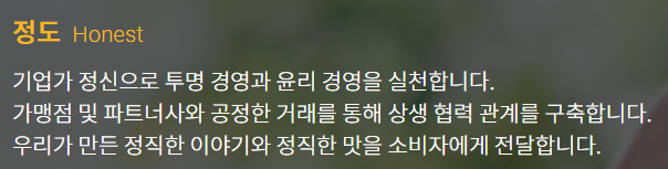 우리가 만든 정직한 이야기와 정직한 맛을 소비자에게 전달합니다.