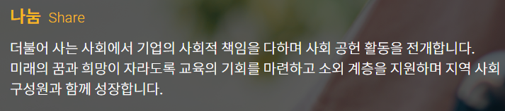 더불어 살고 나누며 살아야 한다. 상생하는 사회를 위해 노력합니다.