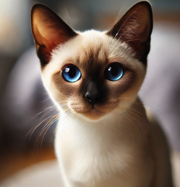 우아한 몸매와 크고 파란 눈이 특징이며, 사람과 대화하듯 야옹거리는 성격을 가지고 있다. 활발하고 장난기가 많으며 주인의 관심을 받길 좋아한다. 독립적인 성향도 있지만 혼자 있는 것을 싫어하는 경우가 많아, 함께 시간을 보내는 것이 중요하다. - 외모: 날씬한 체형, 파란 눈, 짧고 매끈한 털