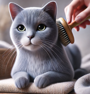 러시안 블루는 단모종이지만 밀도가 높은 더블 코트를 가지고 있어, 적절한 관리가 필요하다.