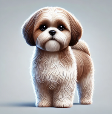 시츄는 짧은 주둥이와 둥근 눈, 풍성한 털이 특징적인 귀여운 외모를 가진 소형견이다.