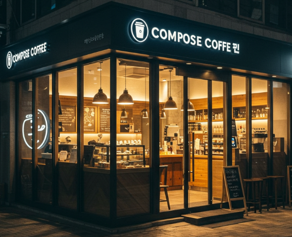 **컴포즈커피(COMPOSE COFFEE)**는 (주)컴포즈커피에서 운영하는 대한민국 대표 커피 프랜차이즈 중 하나입니다.