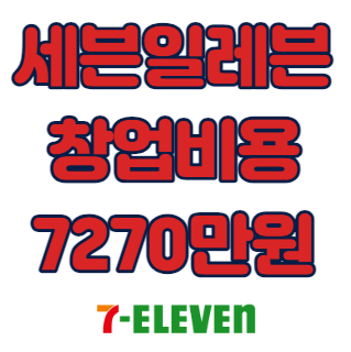 세븐일레븐의 평균 창업 비용은 7270만 원입니다. 창업에 들어가는 비용은 크게 가맹비, 교육비, 보증금, 인테리어, 기타 비용으로 나뉩니다.