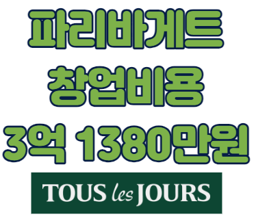 국내 베이커리 프랜차이즈 중 중상급 수준의 투자비용입니다.