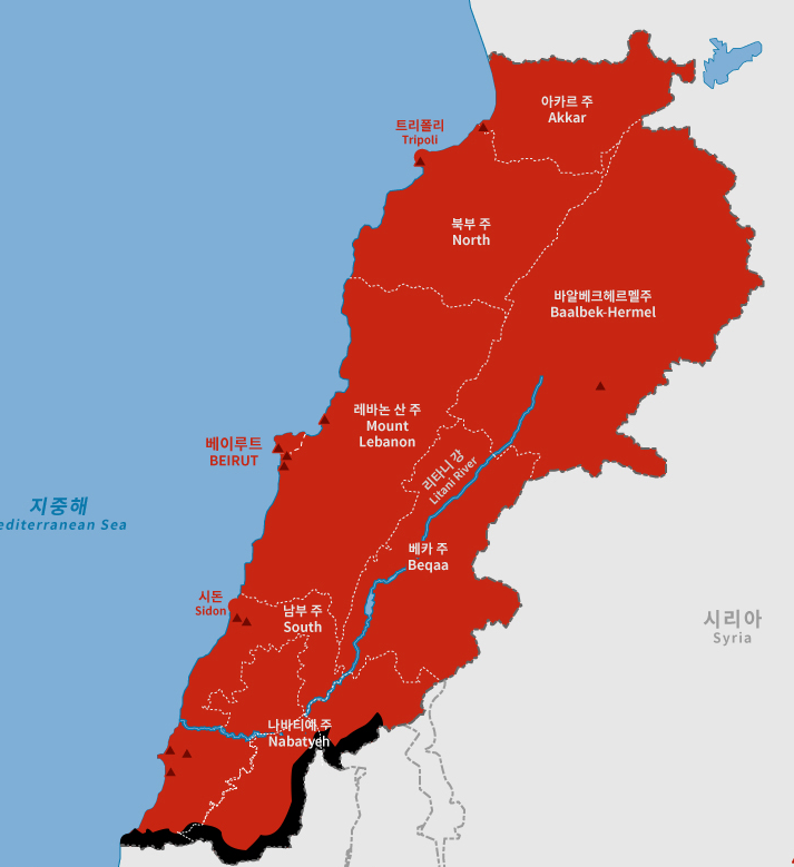 레바논 상세지도