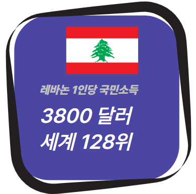 레바논의 국민소득은 약 208억 4400만 달러로 세계 109위 수준이며, 1인당 국민소득은 약 3800달러로 세계 128위에 해당합니다. 최근 몇 년간 경제 위기와 정치적 불안정으로 인해 레바논의 경제 성장은 둔화되었으며, 특히 2019년부터 시작된 경제 위기와 2020년 베이루트 폭발 사고는 국가 경제에 큰 타격을 주었습니다.
