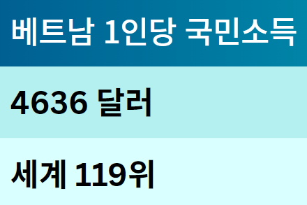 베트남 및 기타 국가 1인당 국민소득